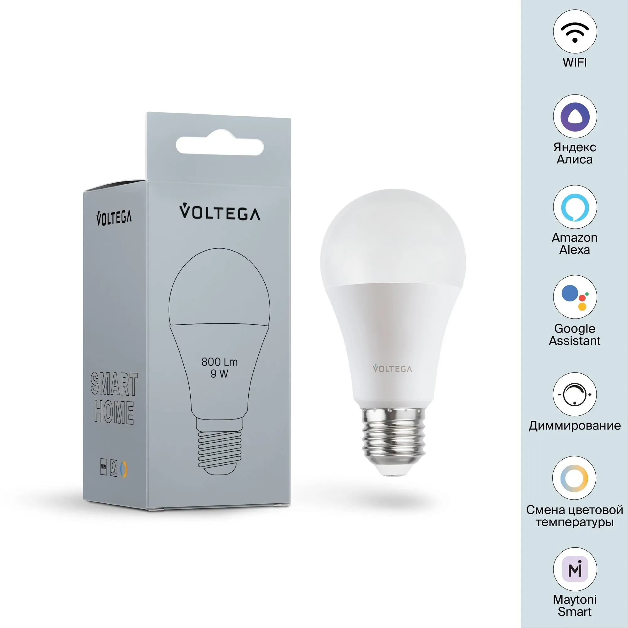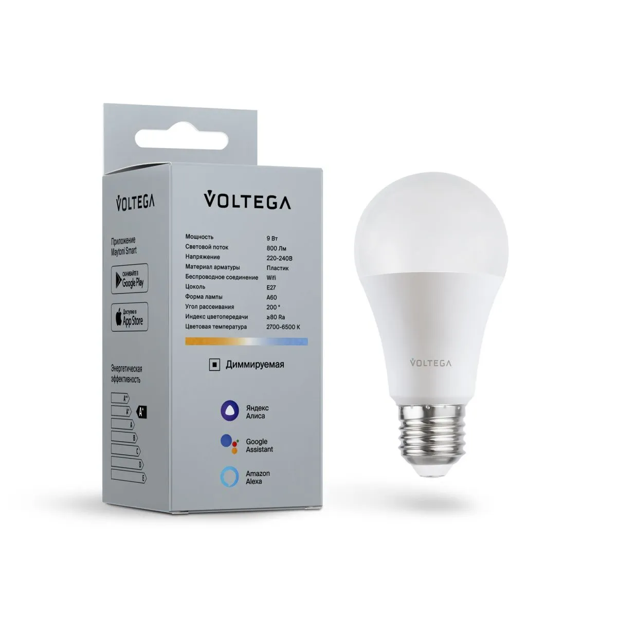 Лампа светодиодная диммируемая Voltega E27 5W 2700К матовая VG-A60E27cct-WIFI-9W 2429 купить в Ростове-на-Дону по лучшей цене