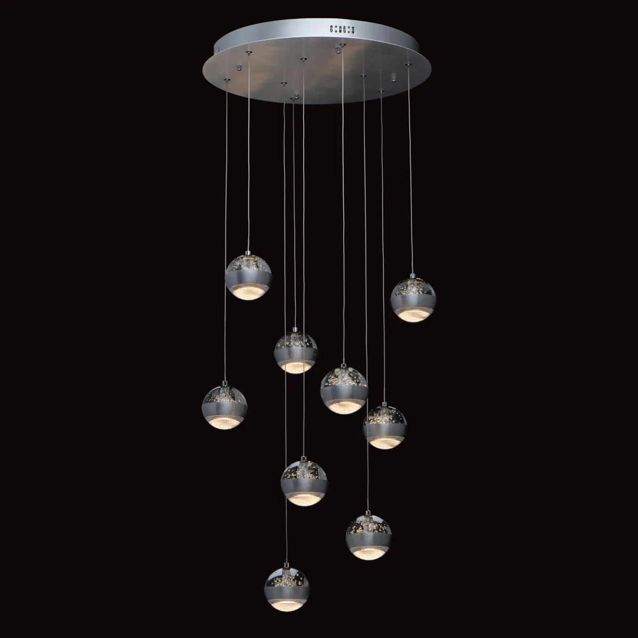 Основание/ сплав алюминия/античное серебро. Плафон/ стекло, акрил/ прозрачный, пузырьки воздуха
