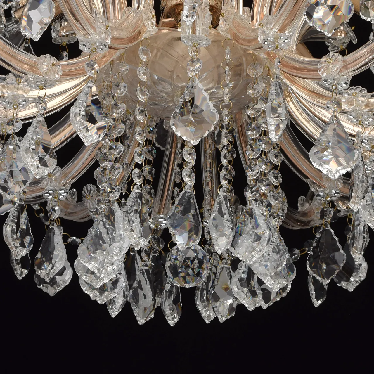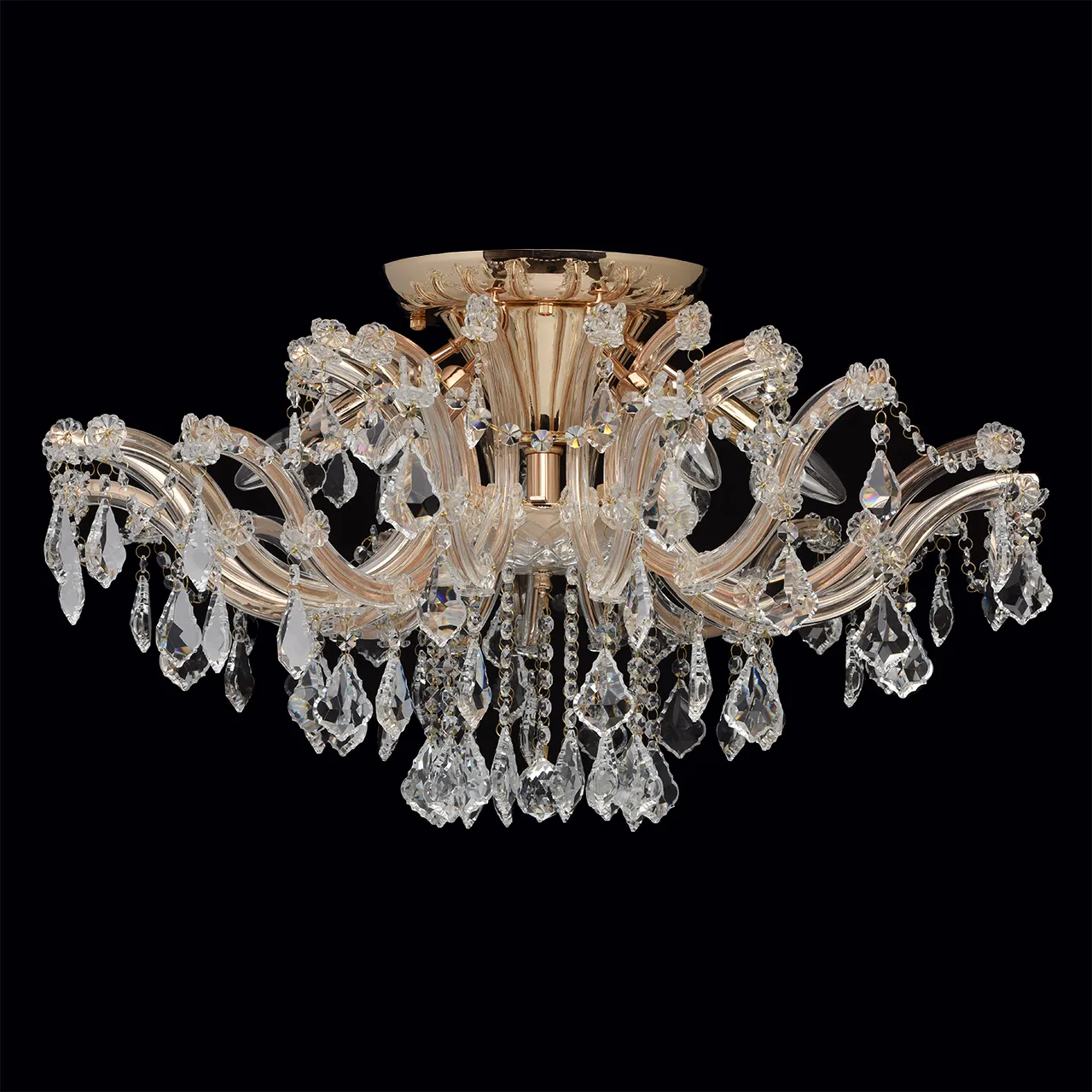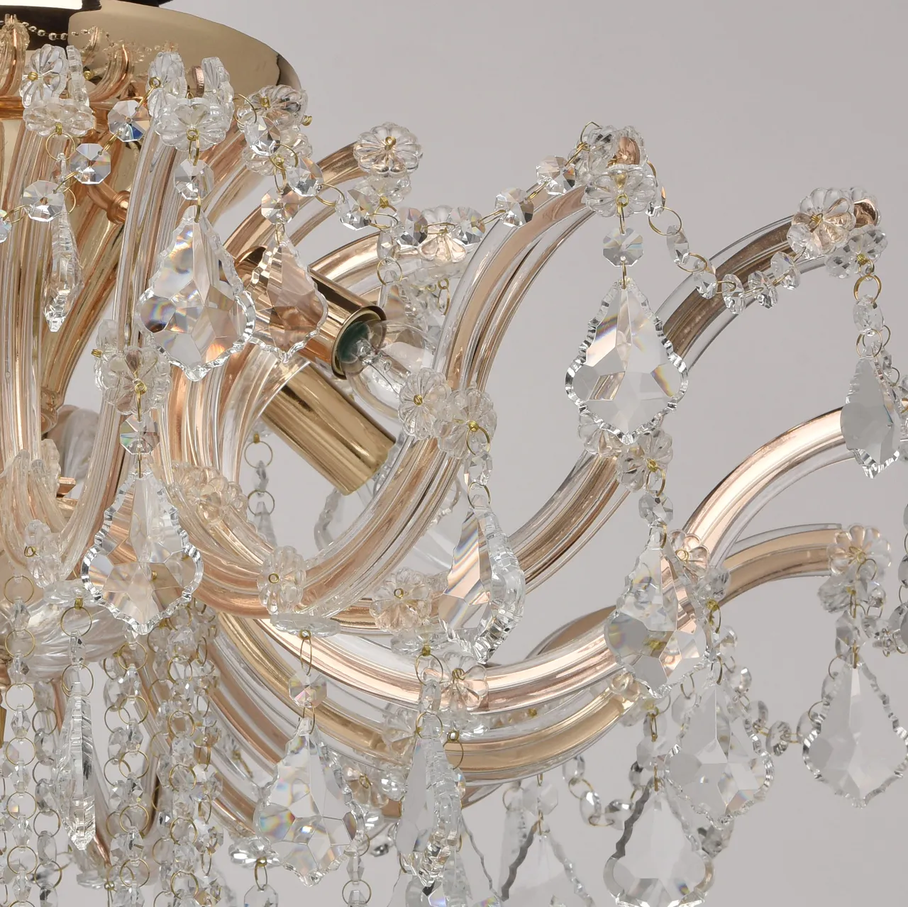 Металлическое основание цвета золота, декоративные элементы из хрусталя, стекла и акрила
